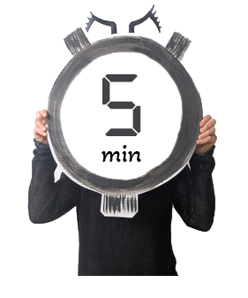 Das Uhrzeittier stellt den Küchenwecker auf 5 Minuten.