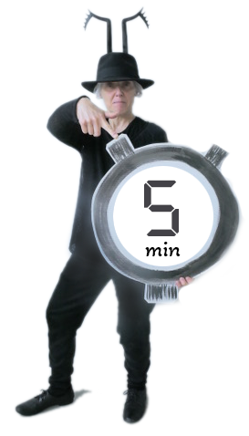 Das Uhrzeittier stellt die Küchenuhr auf 5 Minuten.