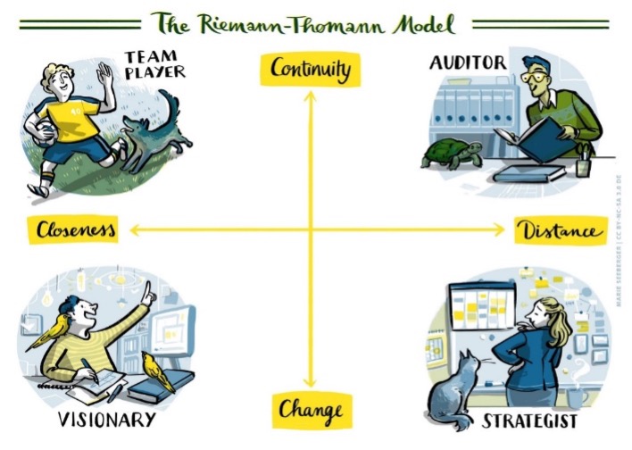 Das Riemann-Thomann-Modell beschreibt die individuelle Persönlichkeit anhand von vier grundsätzlichen Ausrichtungen des menschlichen Verhaltens. Diese Ausrichtungen beeinflussen direkt das Kommunikations- und Beziehungsverhalten.
